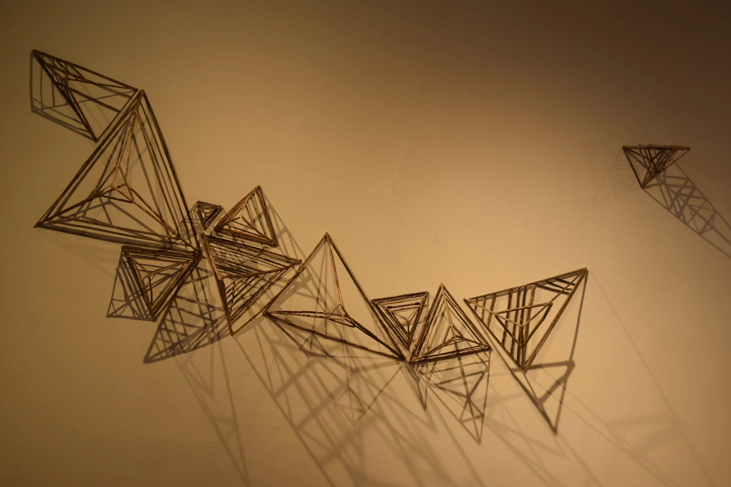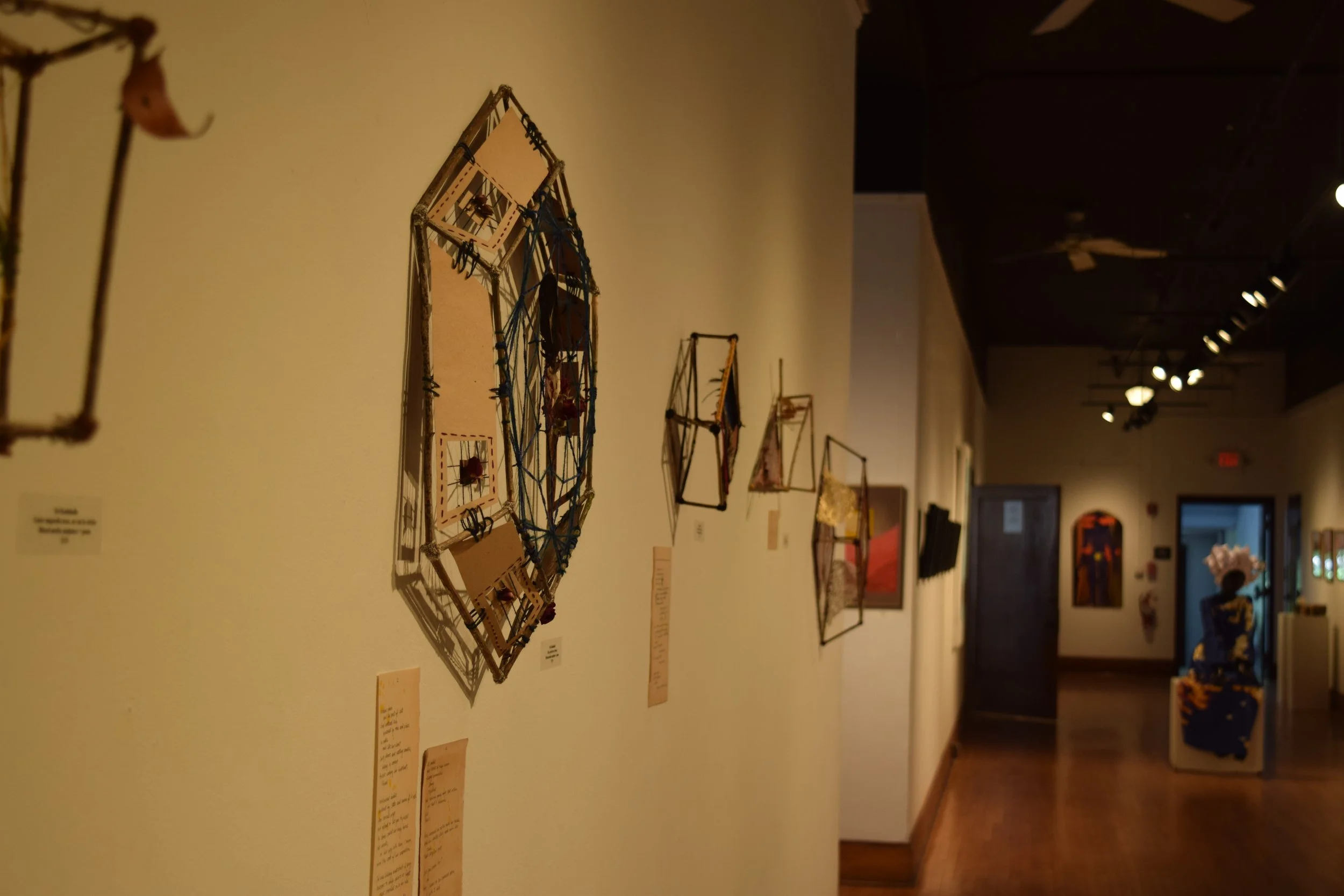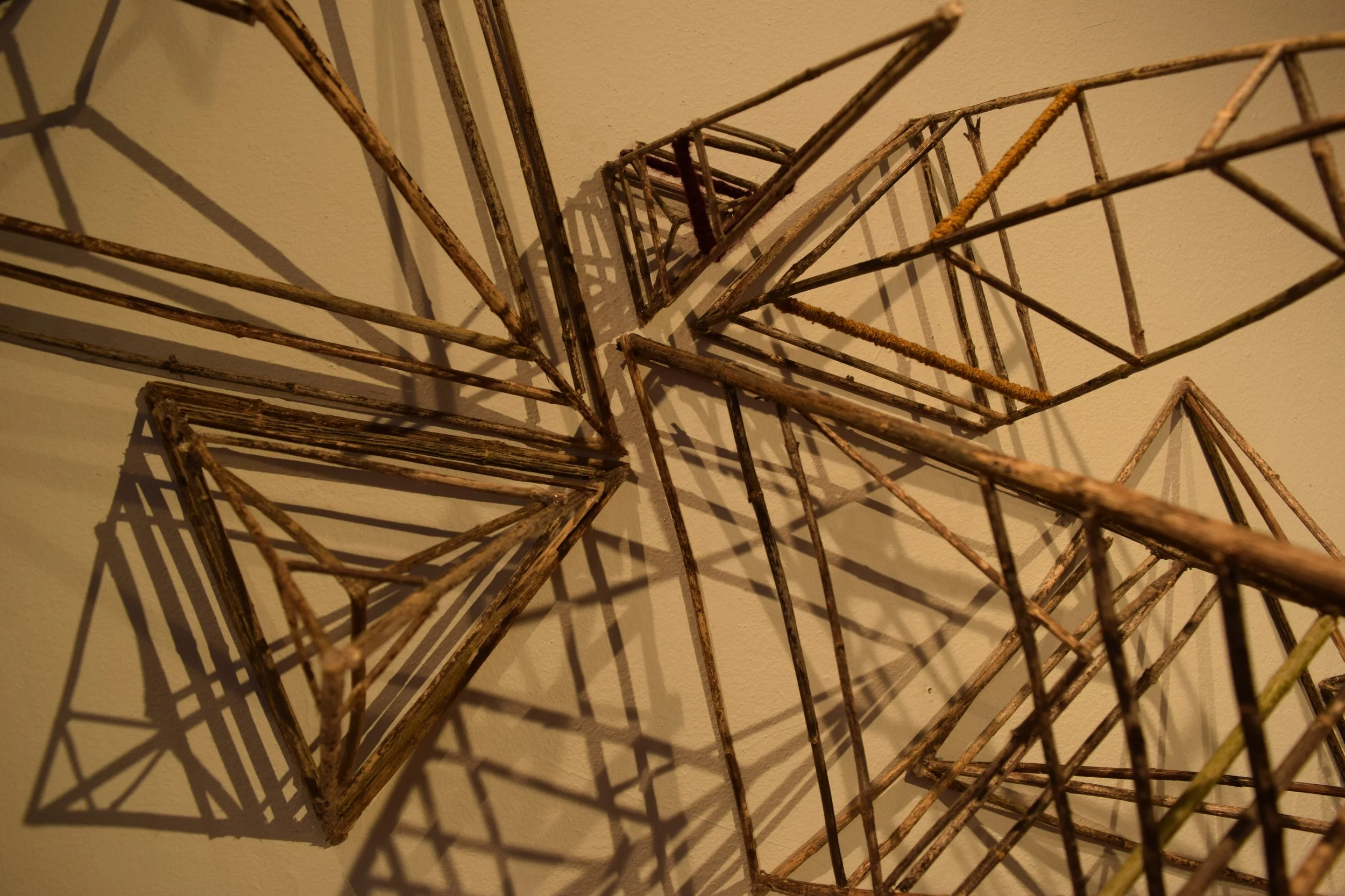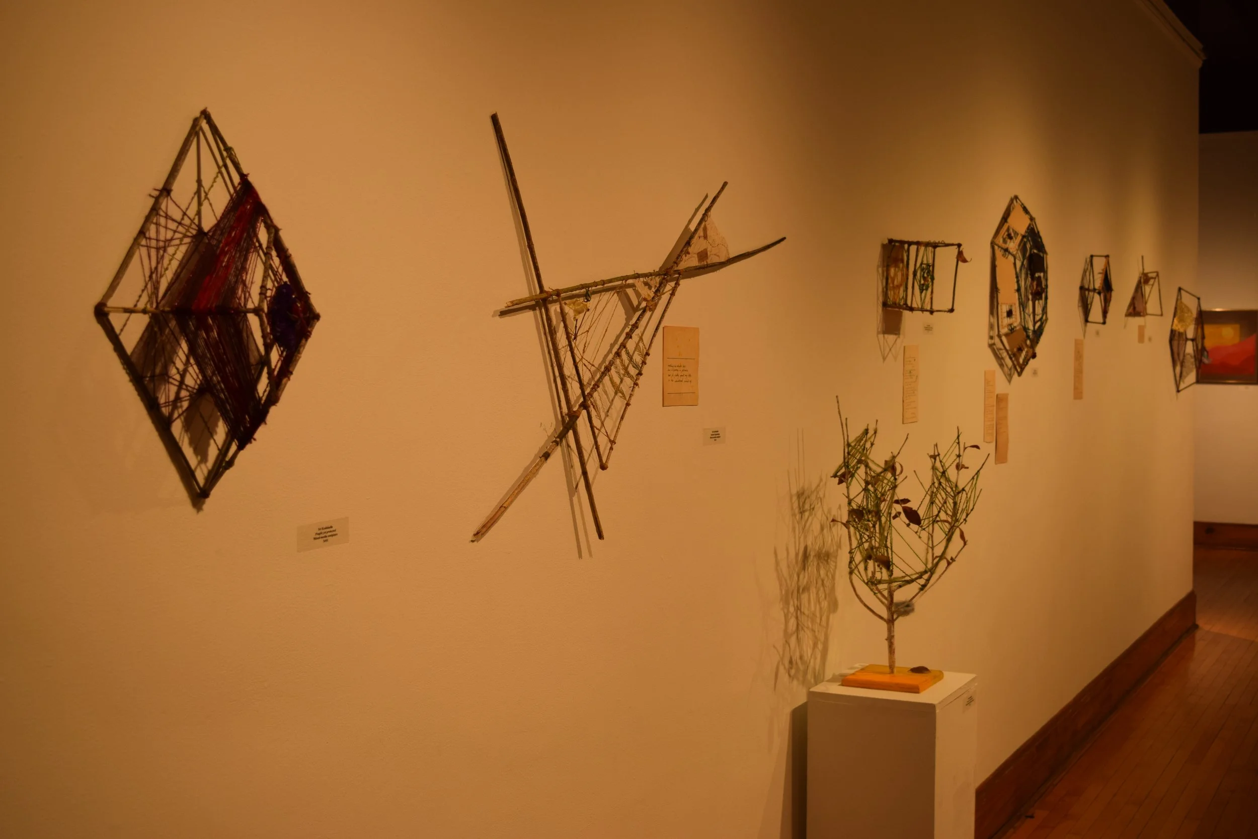 Many of the sculptural works created in 2019 were developed during my time in the McGuffey Incubator residency program. With access to a larger working studio space, my work shifted into mixed-media artforms consisting of found and dried natural ephemera as the source subject. These works created a juxtaposition of sculpture and fiber art with my love of storytelling. The delicate and ephemeral pieces hope to share a personal narrative of my life experience, by combining elements of the natural world with engineered geometric structures. I was drawn to creating shapes, while exploring the fluidity and spontaneity of natural found materials.